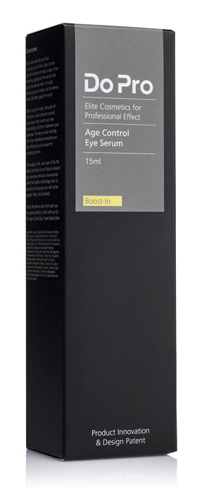 DoPro Age Control Eye Serum , הנו חלק משיטת Age Control של Do Pro למתיחה והפחתת הקמטוטים מתחת לעיניים – טכנולוגיה ייחודית עם הדרמה רולר. המוצר עוצב לשימוש על העור באזור שמתחת ובציידיי העיניים. מטפל באיבוד הגמישות. לאחר השימוש בתכשיר עיניך תהיינה מוצקות יותר, יופחתו הקמטים בציידי העיניים וכן קמטי הזעף. DoPro Age Control Eye Serum , מכיל פורמולה ייחודית של חמצן ופפטידים, שפותחה בעקבות המחקר המקיף שלנו ובטכנולוגיית OxyPro החדשנית. טכנולוגיית OxyPro המשלבת חמצן ופפטידים מבטיחה תוצאות ממושכות המגבירות באופן דרמטי את יעילותם של החומרים הפעילים, ומספקת תוצאות מידיות וארוכות טווח כאחת. בעת המריחה תחושי בעקצוץ קל המעיד על כך שהפורמולה הייחודית חודרת לעורך. הפורמולה מכילה חומצה היאלורונית שמעצימה את הלחות, רטינול שמפחית קמטים, תמצית שורש ליקריץ שמרגיעה ומאירה את העור, ויטמינים ותמציות צמחים הפועלים יחד להעלמת קווים וקמטים, ובכך מאזנים את גוון העור ומעצימים את זוהרו. מומלץ לסיים את הטיפול בעזרת DoPro Age Control Eye cream לקבלת תוצאות מיטביות.