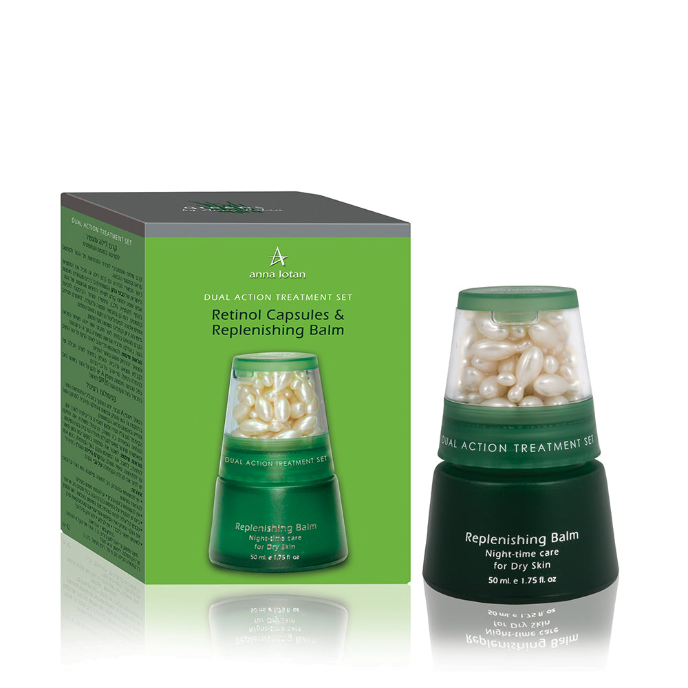 מארז של קפסולות רטינול עם קרם לילה מעשיר, השילוב האופטימלי למניעת קמטים לעור יבש.