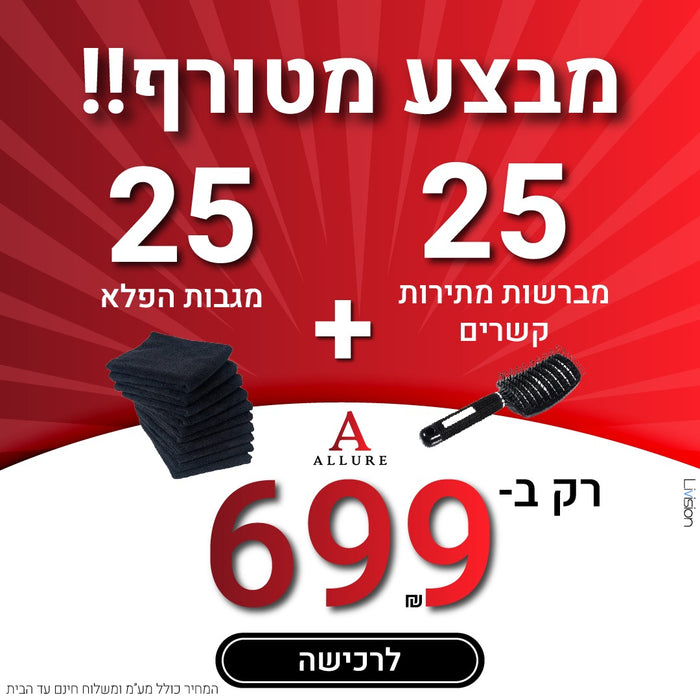 מארז 25 מברשות מתירות קשרים + 25 מגבות הפלא